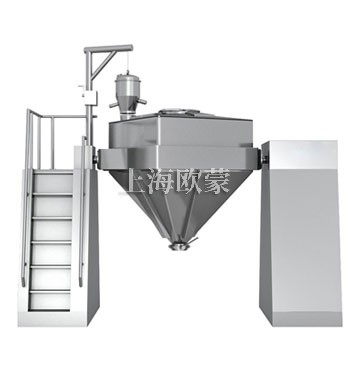將物料裝入方錐形密閉混合桶內(nèi),料斗對稱的軸線與回轉(zhuǎn)軸軸線成一夾角,不同組分物料在密閉的料斗中進(jìn)行三維空間運動,產(chǎn)生強烈翻轉(zhuǎn)和擴散收縮作用,達(dá)到較佳的混合效果。